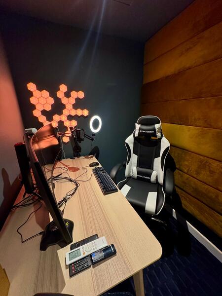 Welcome to the Streamer Suite—your ideal blend of comfort, creativity, and tech innovation, perfect for content creation and gaming. Located in vibrant Santurce, Puerto Rico, this suite features a professional-grade streaming and gaming setup with an immersive 49" curved ultrawide monitor at 144Hz, color LED-lit gaming mouse and keyboard, and a USB boom microphone. A 4K camera and adjustable LED ring light complete the setup for high-quality streaming, recording, or gaming. Unwind on the luxurious queen-sized bed or in the chic lounge area, designed for ultimate relaxation and productivity. The Streamer Suite offers a unique, stylish experience crafted for modern creators.